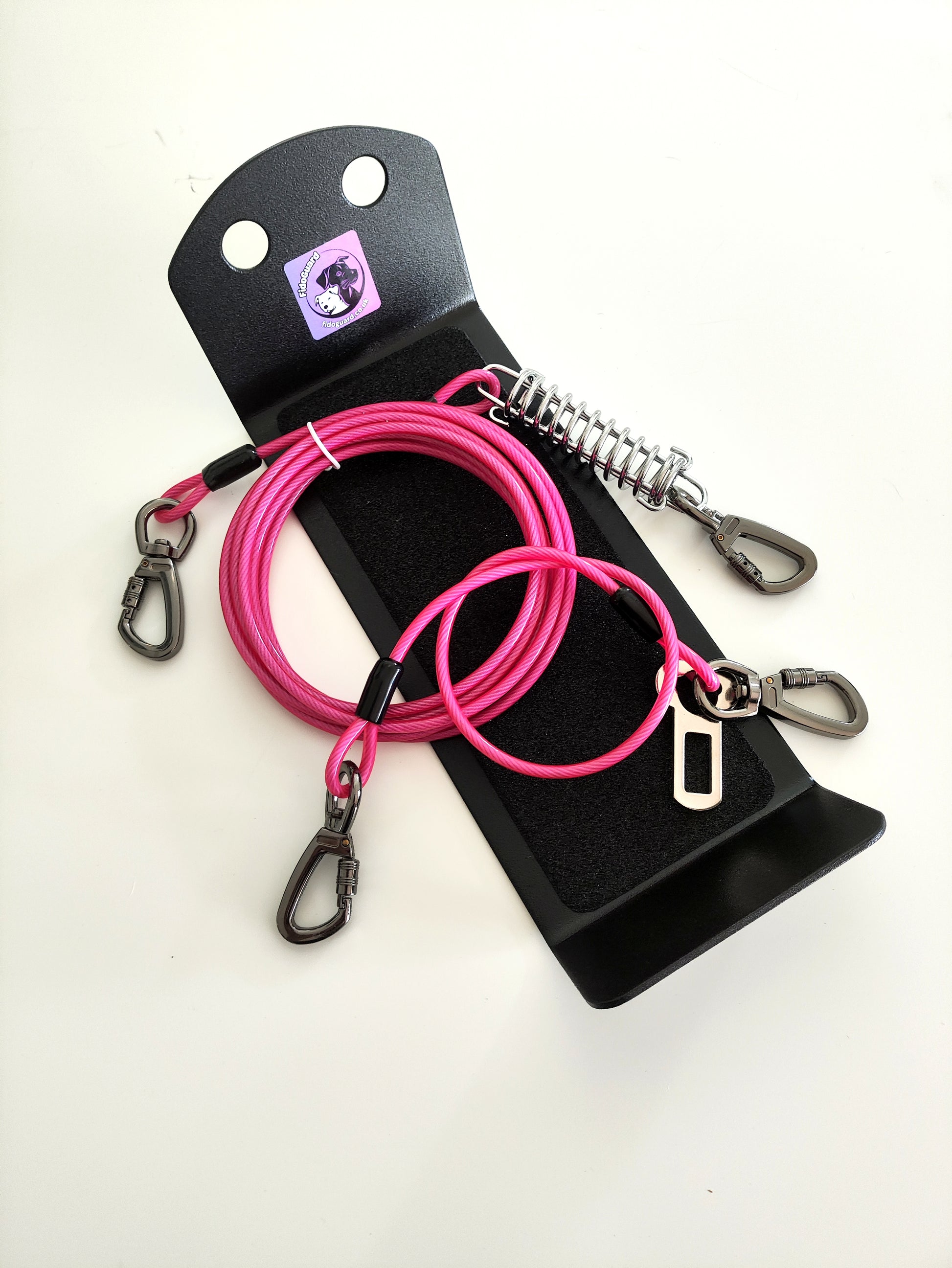 The FidoGuard Premium Travel Tie and the FidoGuard Tie Out are both chew resistant restraints to keep your woofers safely strapped in for the journey and on site regardless of how determined they are to escape.