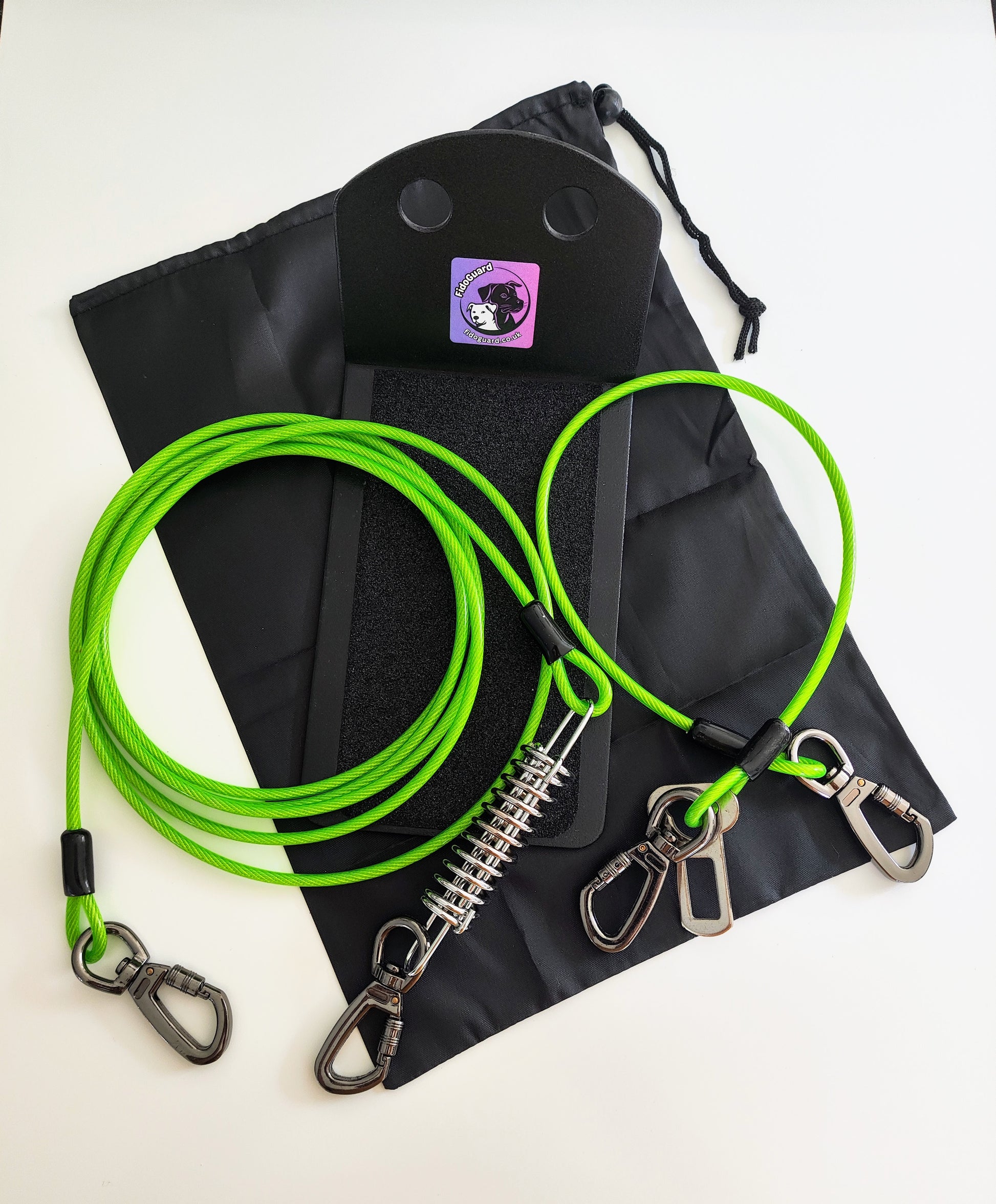 The pack contains the unique FidoGuard, a Premium Travel Tie, and a Tie Out.